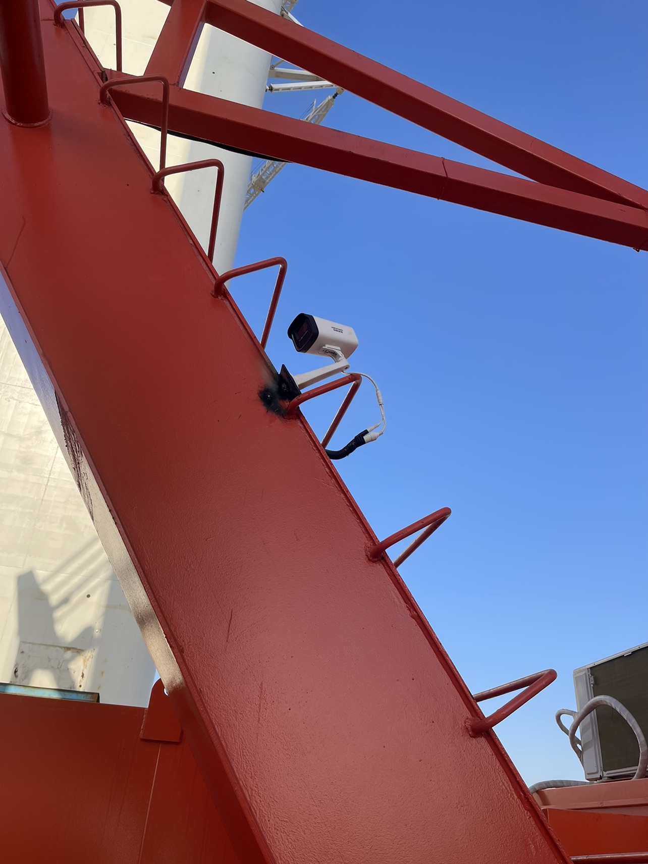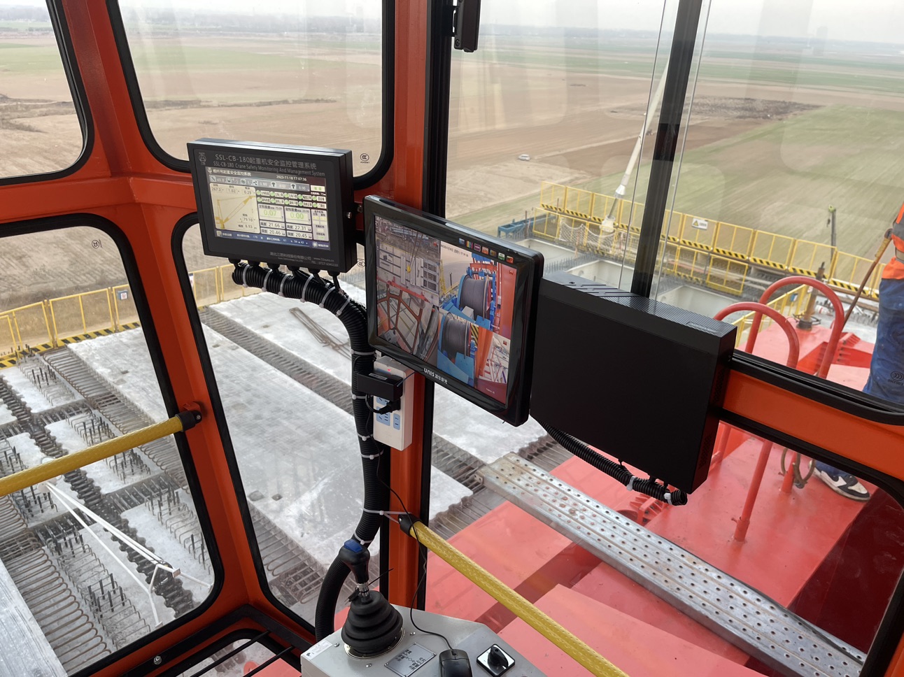 桅桿吊起升卷揚(yáng)、變幅卷揚(yáng)各裝1路攝像頭,用于監(jiān)控現(xiàn)場電機(jī)卷揚(yáng);桅桿吊桿頭裝一路球機(jī),用于監(jiān)控吊裝區(qū)域。監(jiān)控設(shè)備的視頻監(jiān)控顯示器放置于司機(jī)室內(nèi),可以讓駕駛員全方位掌握桅桿吊的實時運行狀況,提高了操作的安全性。