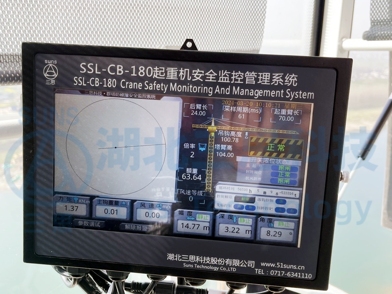 主機(jī)采用10英寸顯示屏,能實(shí)時(shí)顯示工地現(xiàn)場塔機(jī)運(yùn)行狀況,通過無線網(wǎng)絡(luò)把各種傳感器采集的參數(shù)實(shí)時(shí)上傳到智慧工地監(jiān)管平臺(tái),實(shí)現(xiàn)系統(tǒng)監(jiān)管。