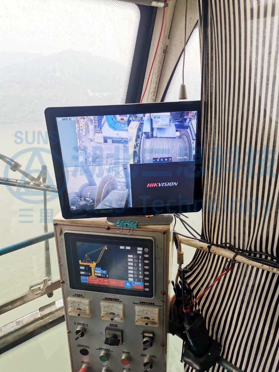 視頻監(jiān)控系統(tǒng)監(jiān)測(cè)塔吊的起升卷揚(yáng)、行程卷揚(yáng)、吊裝區(qū)域,視頻顯示器放置于駕駛室中,給駕駛員帶來更加寬廣的操作視野,提高了塔吊操作便捷性。