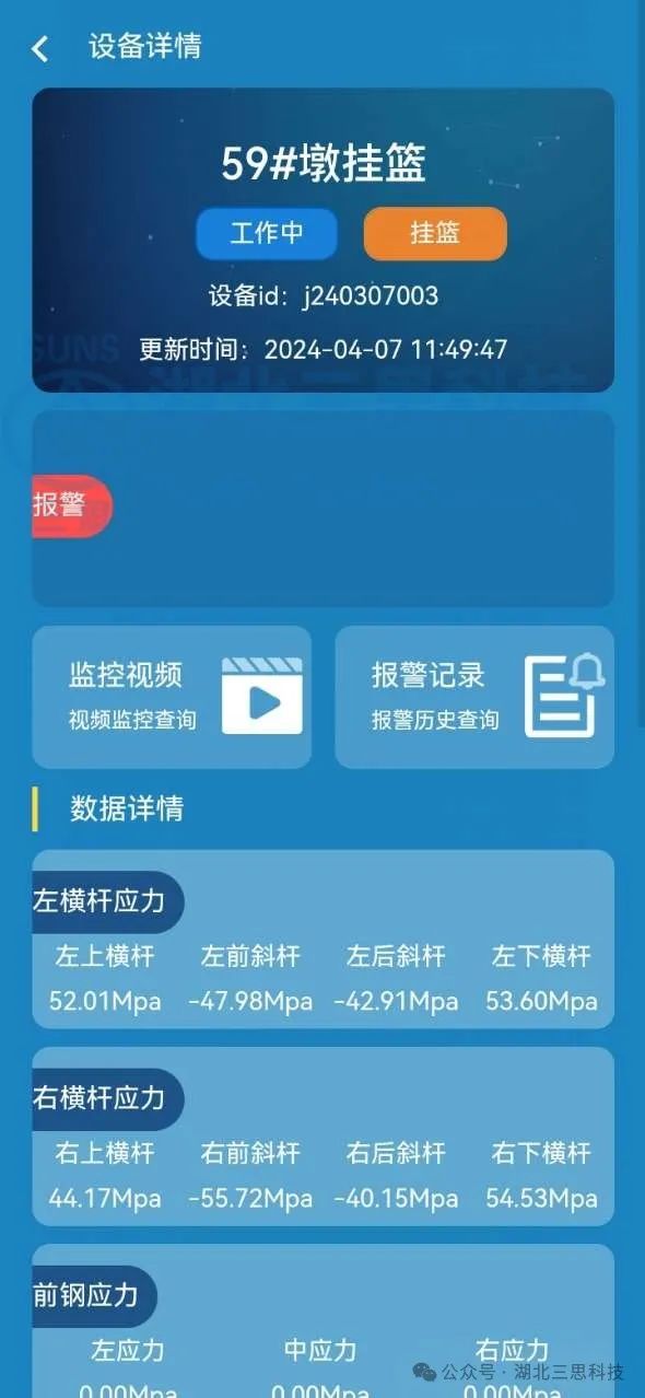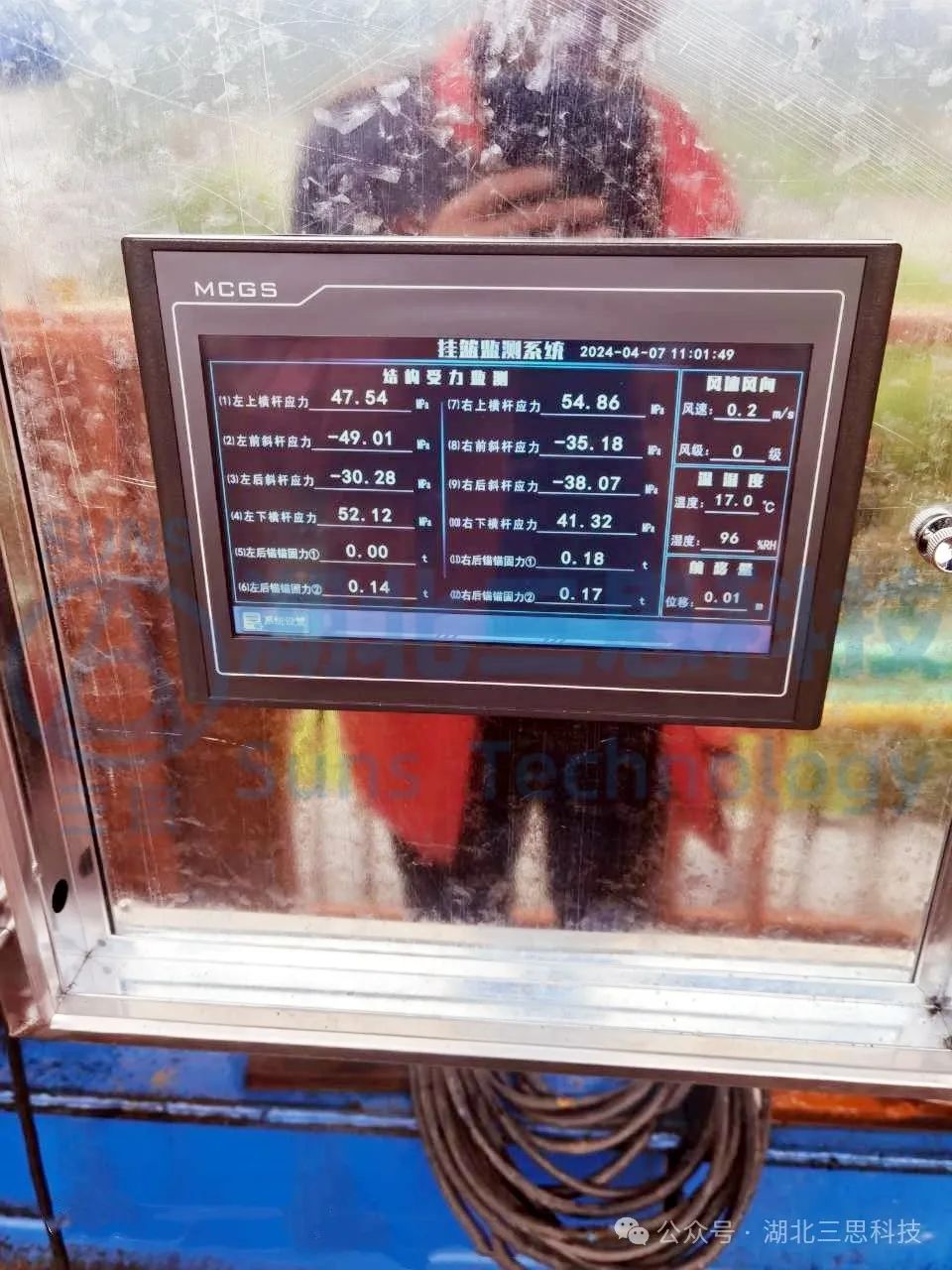 該系統(tǒng)具有預(yù)警、報(bào)警功能,如吊帶測(cè)應(yīng)力不合理時(shí),提前進(jìn)行預(yù)警和報(bào)警,提醒相關(guān)人員調(diào)整其錨固部位螺栓,達(dá)到整體結(jié)構(gòu)應(yīng)力平衡。