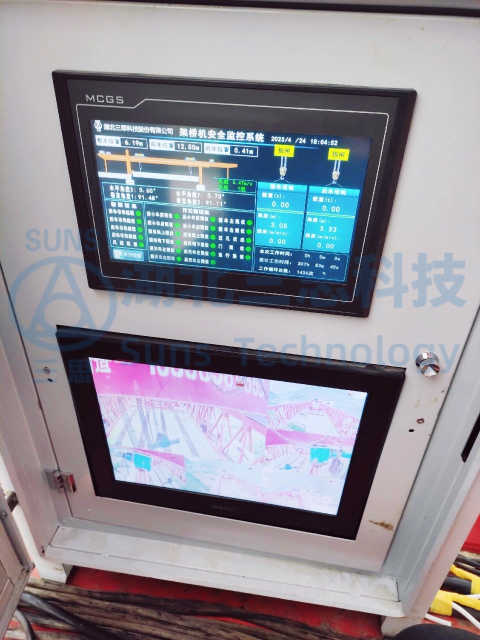 視頻監(jiān)控系統(tǒng)監(jiān)測(cè)架橋機(jī)的過(guò)孔狀態(tài)、架梁狀態(tài)、運(yùn)梁車(chē)同步狀態(tài),視頻顯示器放置于駕駛室中或者主機(jī)電箱內(nèi),給駕駛員帶來(lái)更加寬廣的操作視野,提高了架橋機(jī)操作便捷性。