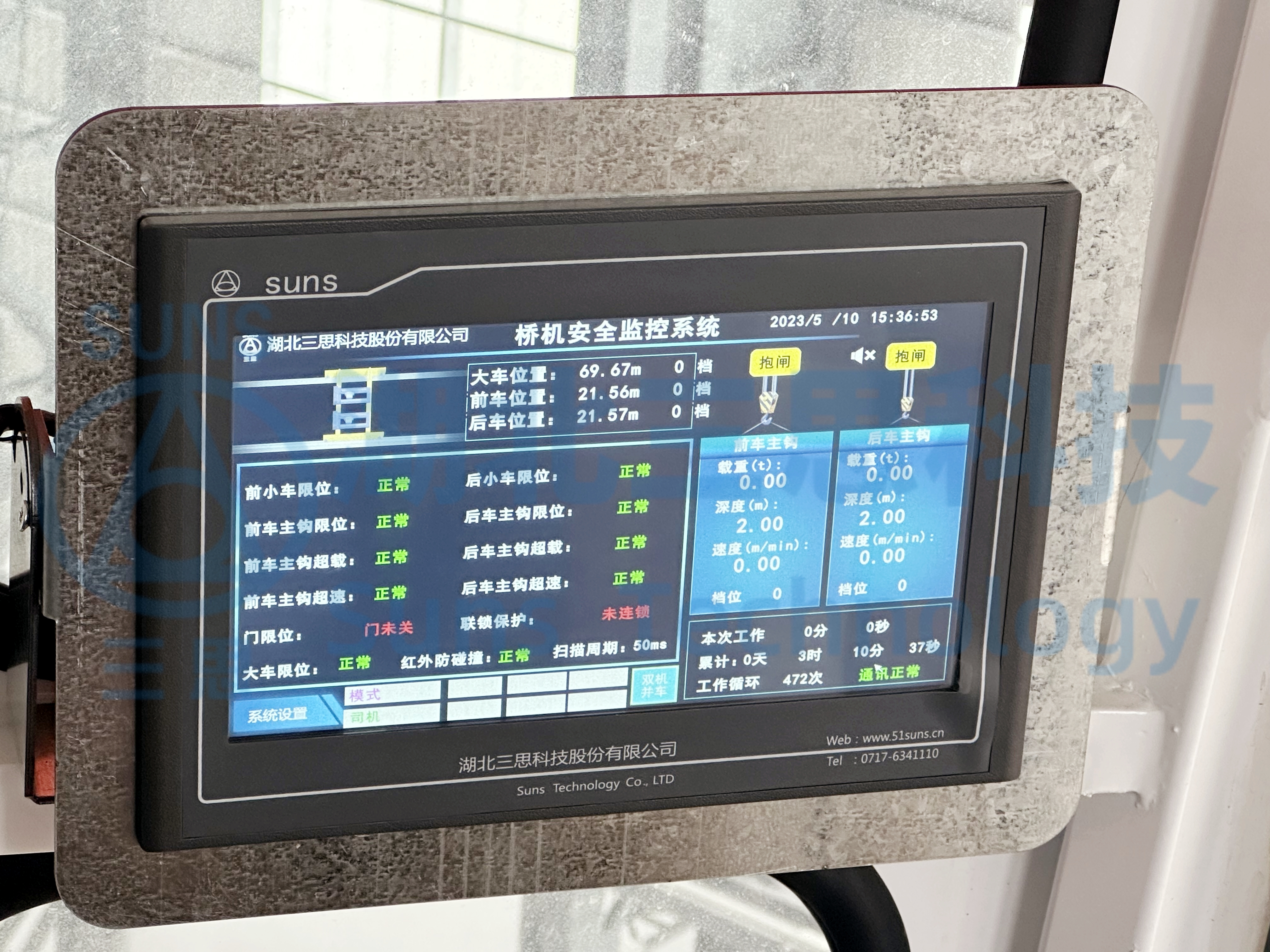 近日,由湖北三思科技承接的江蘇盾構(gòu)機(jī)廠橋式起重機(jī)安全監(jiān)控管理系統(tǒng)通過工程驗(yàn)收并正式交付使用。本次方案使用的是由湖北三思科技自主研發(fā)的SSL-CB型橋機(jī)安全監(jiān)控管理系統(tǒng)。